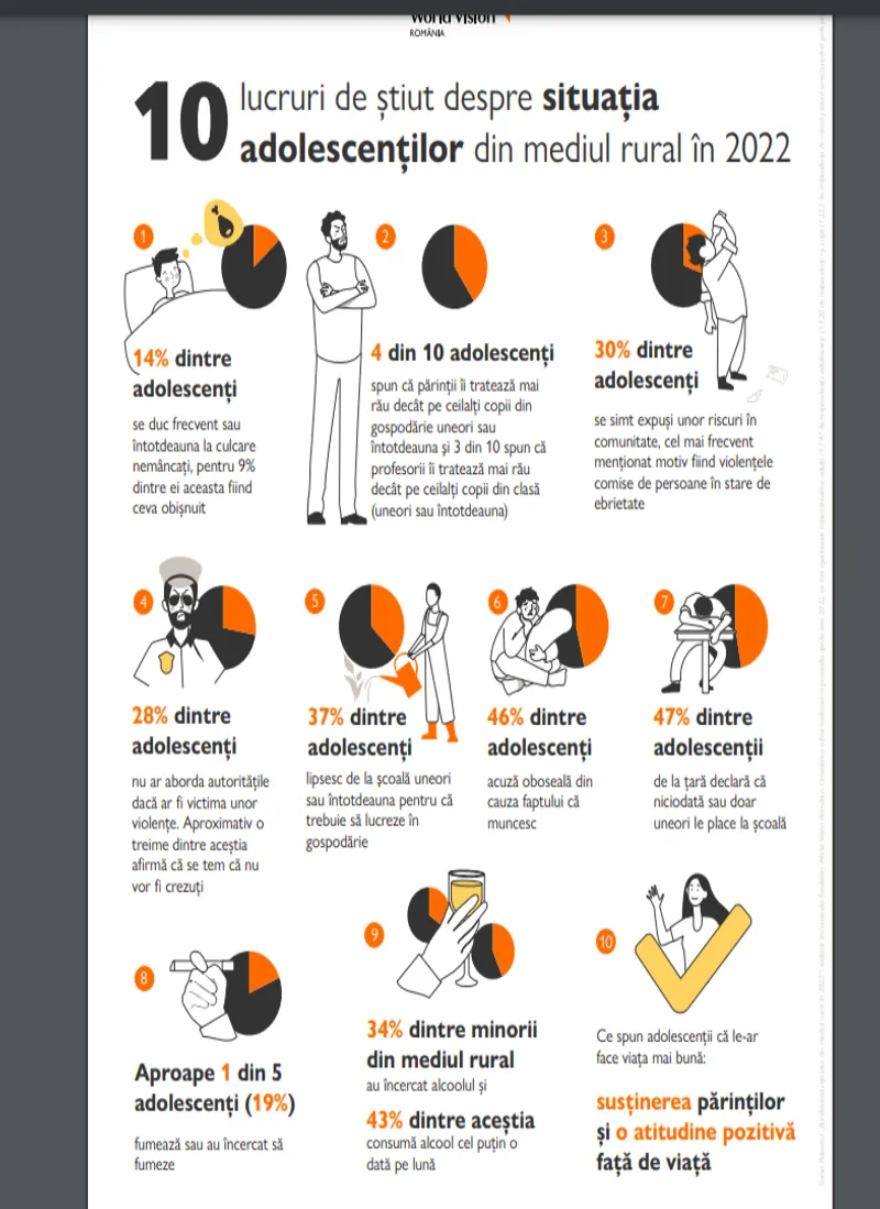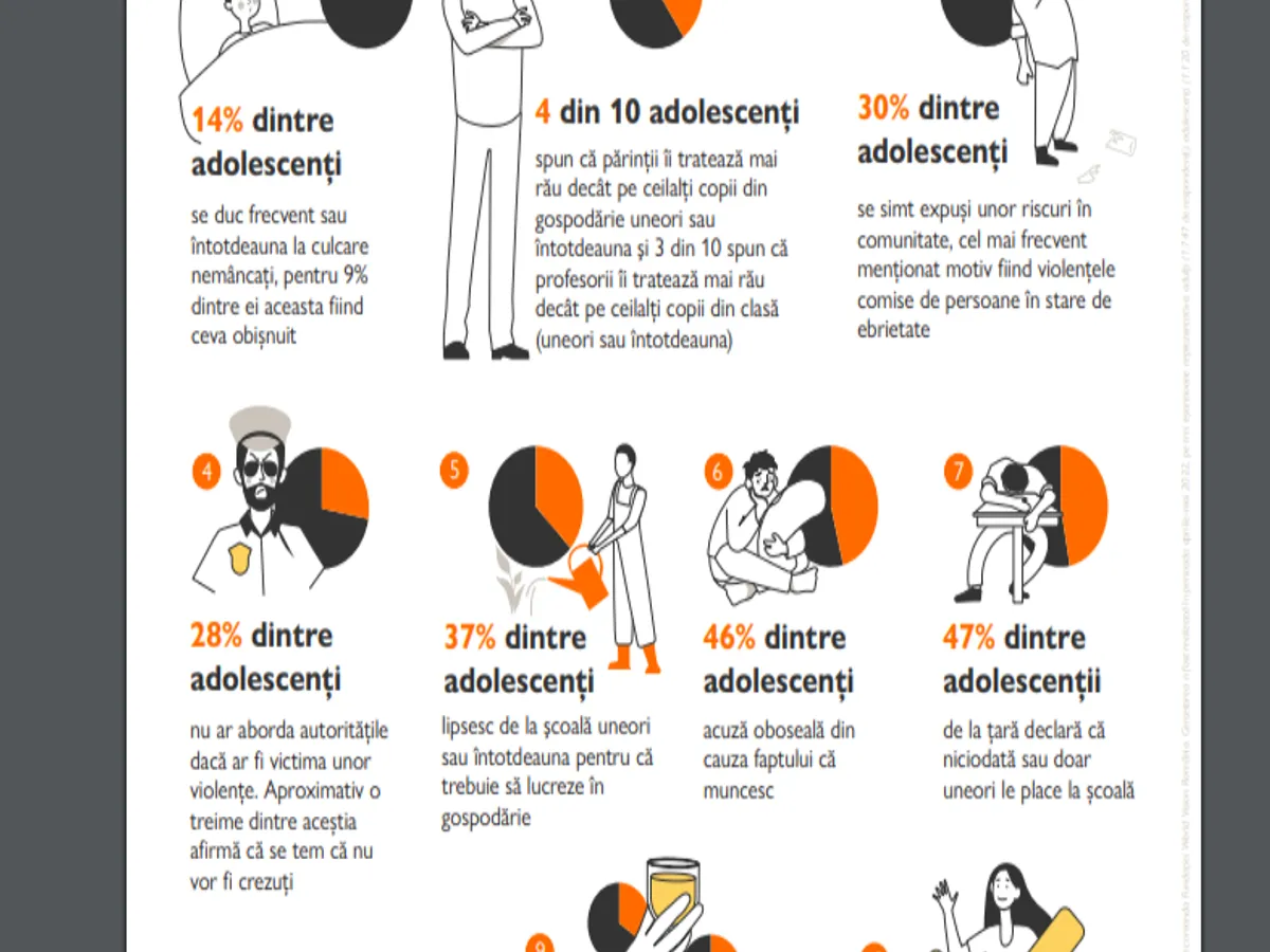 - 28% dintre adolescenţi nu ar aborda autorităţile dacă ar fi victima unor violenţe. Aproximativ o treime dintre aceștia se tem că nu vor fi crezuţiâ