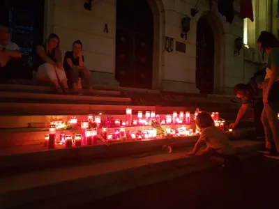 Câteva mii de manifestanţi au ajuns în faţa Ministerului de Interne şi strigă „Jos Guvernul hoţilor!”, „Nu scăpaţi!”, „Incompetenţii”, ”Criminalii”, ”Alexandra”, ”Nu plecăm acasă, morţii nu ne lasă”. Participanţii au ţinut un moment de reculegere şi au aprins lumânări.
