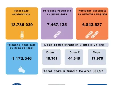 Raport CNCAV: doar 41% din populație vaccinată, peste 19.000 de persoane cu reacții adverse