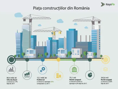 Conform unei analize realizate de KeysFin, cifra de afaceri a pieței locale de construcții a crescut cu 17% față de 2017 și a depășit cu aproape 30% nivelul din 2014, ajungând la peste 84,4 miliarde de lei în 2018.