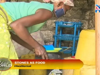 Femeia, care locuiește în Mombasa - Kenya, a pus pietre la foc pentru a îi face pe copiii ei să creadă că urmează să le pună masa pentru a îi opri din plâns și a îi calma.