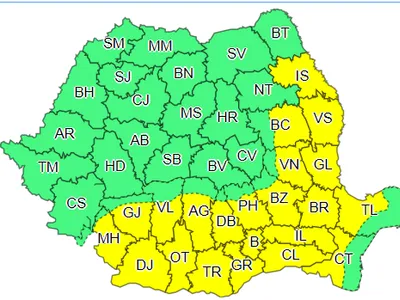 Avertizare ANM de COD GALBEN de instabilitate atmosferica pentru mare parte din țară. Zonele vizate