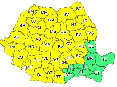 Administraţia Naţională de Meteorologie (ANM) a emis, miercuri, o avertizare Cod galben de instabilitate atmosferică temporar accentuată, valabilă pe parcursul întregii zile, în 27 de judeţe, precum şi o informare de vreme rea ce vizează majoritatea regiunilor.