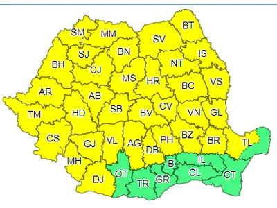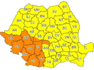 Agenţia Naţională de Meteorologie a transmis o avertizare de cod portocaliu pentru 11 judeţe din țară, până luni după-amiază.