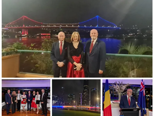 "Este emoţionant să admiri, cu prilejul Zilei Naţionale a României, culorile tricolorului nostru proiectate pe edificiile marcante ale oraşului Brisbane, oraşul cu cea mai dinamică dezvoltare din Australia, în perspectiva Jocurilor Olimpice pe care le va găzdui în 2032.