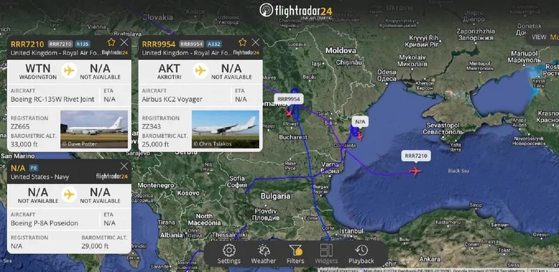 2 avioane Eurofighter britanice, un ATR turcesc, un Boeing cu torpile pe cerul României au fost înregistrate pe cerul României. Cea mai ciudată apariție este cea a avionul turcesc care monitoriza „ruta grânelor”.