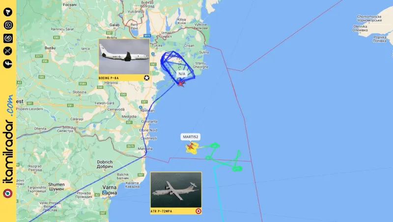 O misiune mai rar urmărită este cea a unui ATR P-72MPA al Marinei turcești (reg. TCB-754 - c/s MARTI52) care patrulează în apele internaționale din sudul României, unde efectuează o serie lungă de mișcări pe orbită. Este demn de remarcat faptul că prin această zonă trece ruta navelor care transportă grâu ucrainean către alte țări.
