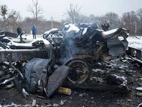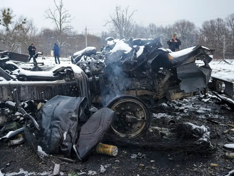 Ministerul ucrainean al Apărării a transmis că un total de 20 de vehicule militare rusești au fost distruse, joi, în apropierea bazei aeriene Gostomel.