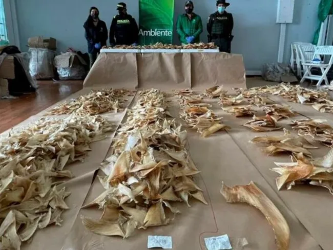 Autorităţile columbiene au anunţat vineri că au confiscat un transport de 3.493 de aripioare de rechin care urmau să fie traficate ilegal în Hong Kong de pe aeroportul din Bogota, relatează Reuters.
