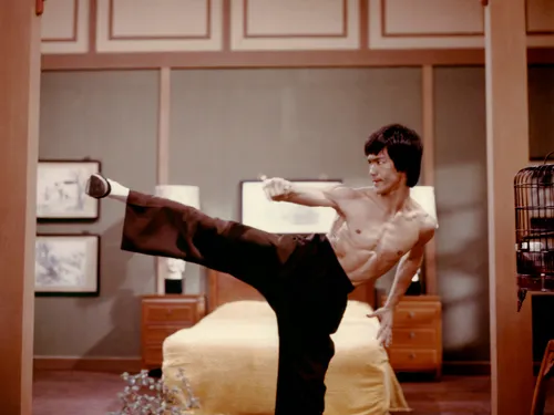 Bruce Lee este cunoscut pentru mișcările sale impresionante: loviturile înalte, cu plutire, devastatoare și mişcarea rapidă, ca un dans, a picioarelor. Nu-i aşa că par mişcările unui dansator?