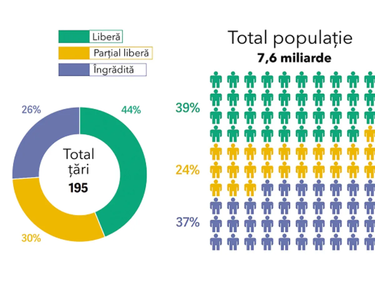 În doar 39% din țări, cetățenilor le sunt respectate pe deplin drepturile și libertățile individuale.