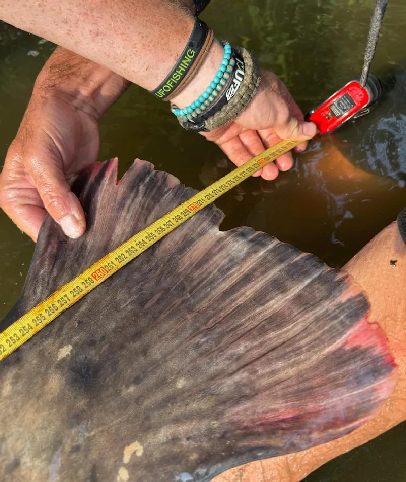 Un coleg l-a ajutat să aducă somnul la țărm în 30 de minute. El estimează că acesta cântărește până la 130 de kilograme. În cele din urmă, a fost nevoie de patru bărbați pentru a scoate captura din apă pentru o fotografie.