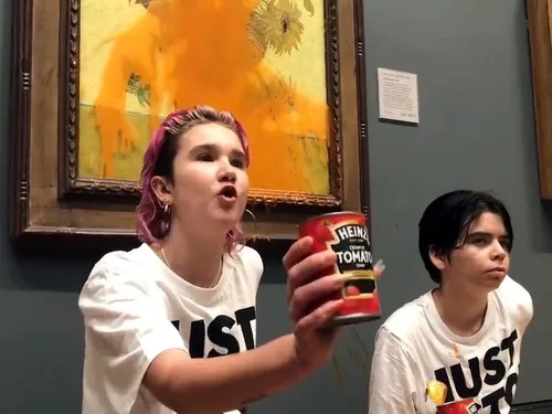 Potrivit unor imagini publicate pe internet de organizaţia ecologistă Just Stop Oil, care solicită oprirea imediată a oricărui nou proiect petrolier sau gazier, două tinere activiste au aruncat, vineri, conţinutul din două conserve cu supă de roşii peste celebrul tablou, pictat în 1888 şi a cărui valoare a fost estimată la peste 84 de milioane de dolari, anunță Reuters și Agerpres.