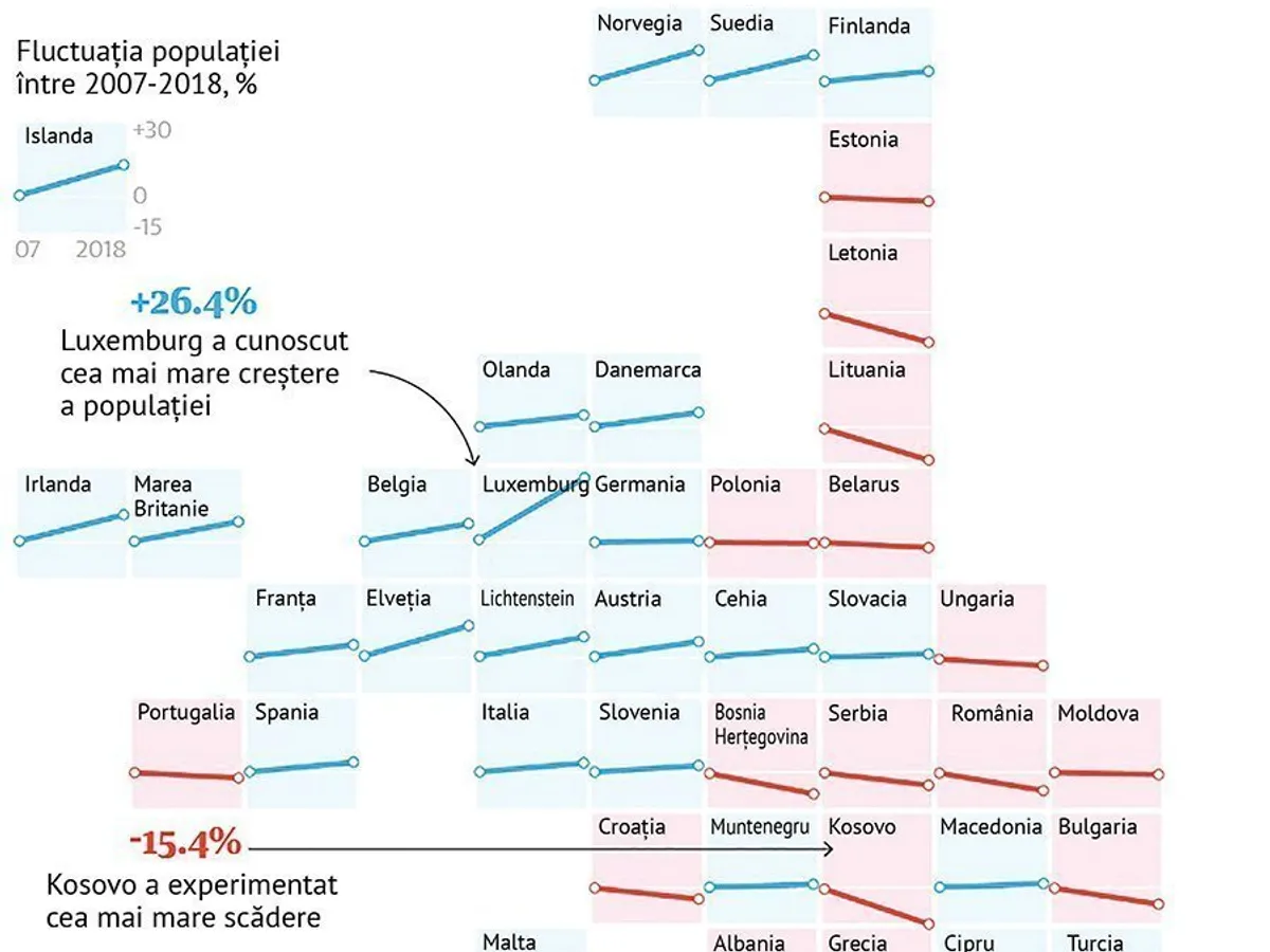 De altfel, populațiile tuturor țărilor din regiune s-au diminuat în ultimii 30 de ani. Letonia a pierdut un sfert, Bulgaria și România, o cincime.