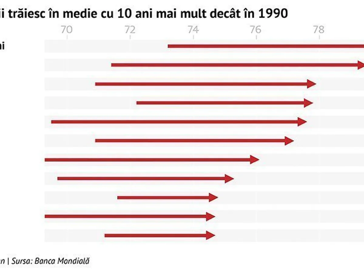 Speranța de viață în celelalte țări est-europene era asemănătoare. De atunci încoace, speranța de viață a crescut cu 10%, iar est-europenii ajung să trăiască și 80 de ani.