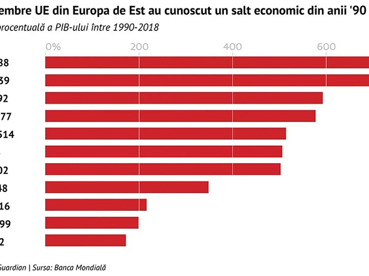 Statisticile arată, însă că din 1990 încoace, economiile Poloniei și Slovaciei, spre exemplu, au crescut de șapte ori, iar economiile Estoniei, Letoniei, Lituaniei, României și Cehiei, de cinci ori.