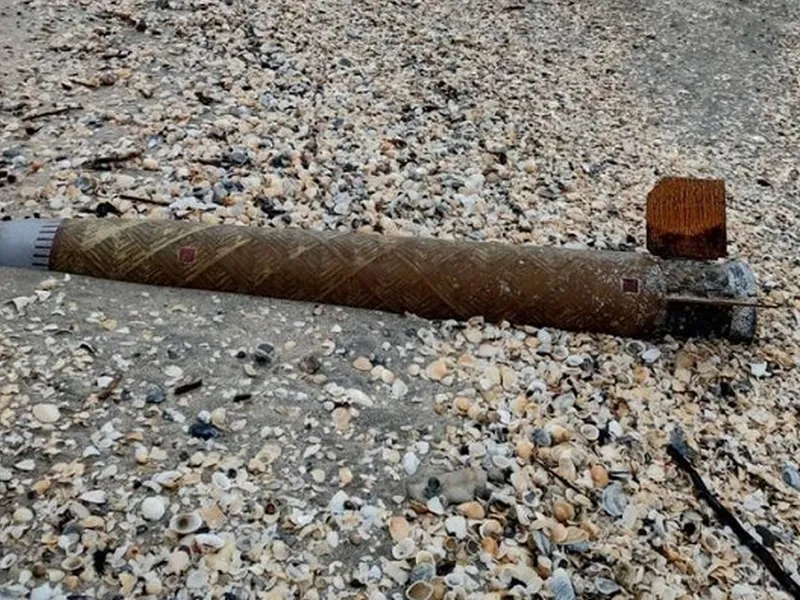 Alertă la Gura Portiţei - Periboina, după găsirea componentei unei rachete, pe plajă