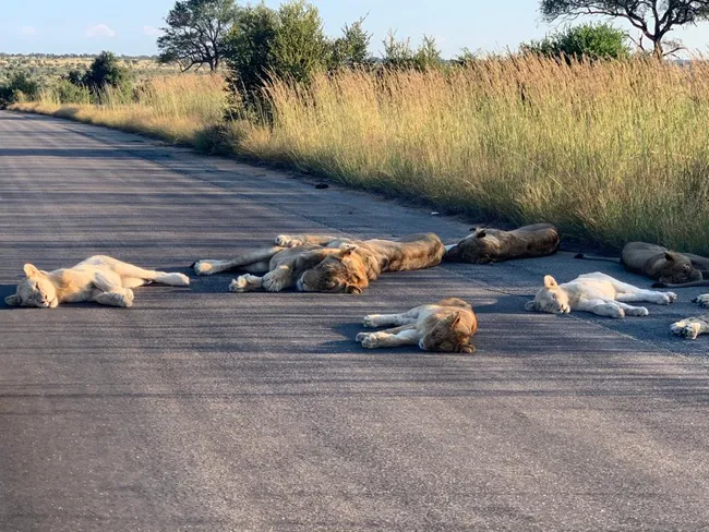 În Parcul Național Kruger, din Africa de Sud, paznicul Richard Sowry a fotografiat leii care au ocupat șoselele destinate, de regulă, mașinilor turiștilor.