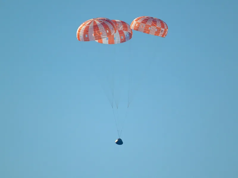 Capsula Orion Integrity a NASA s-a parașutat ușor în apele calme din largul coastei de sud a Californiei la scurt timp după ora 17:07, ora Pacificului (00:07 GMT, sâmbătă), încheind o misiune care, cu patru zile înainte, i-a dus pe astronauți la 405.000 de kilometri distanță de Pământ, mai adânc în spațiu decât orice altă misiune cu echipaj uman până atunci.