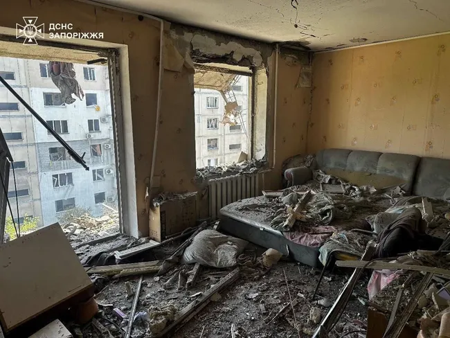 Earlier today Zaporizhzhia was also brutally struck with aerial bombs. Ordinary residential buildings were damaged.… pic.twitter.com/bMrAUzeEKb