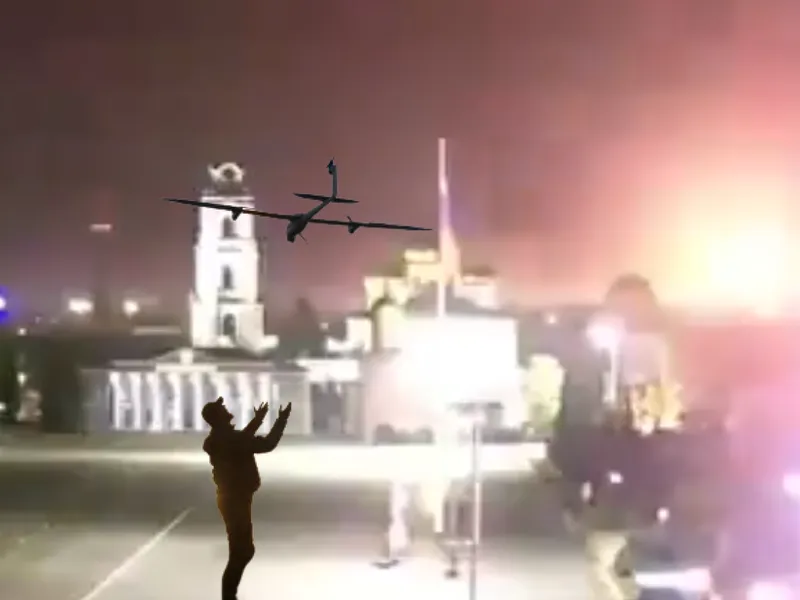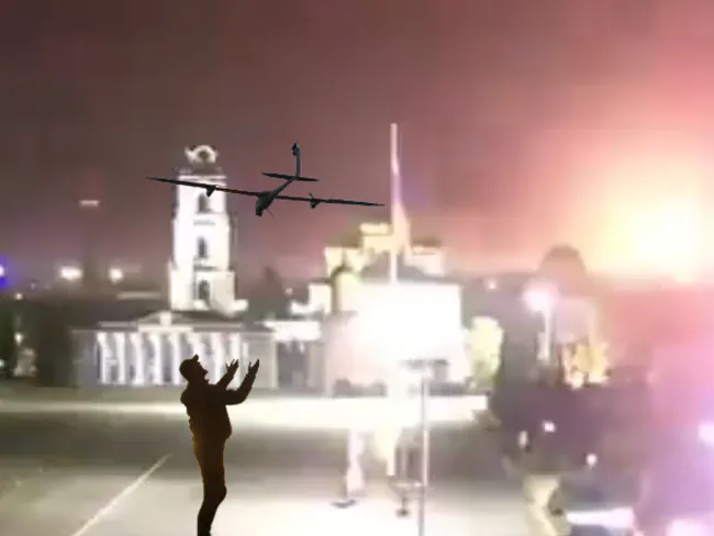 Propagandă rusă a menționat că apărarea aeriană a reacționat în regiunea Tula noaptea trecută și a doborât două drone, însă imaginile surprinse pe o cameră de luat vederi din vecinătate a surprins momentu atacului.