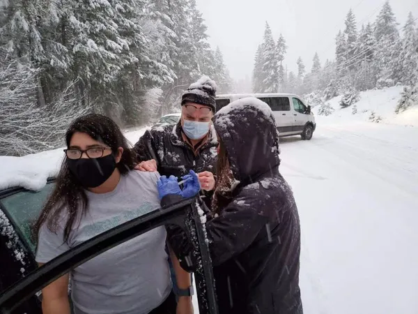 Câțiva angajați din domeniul medical din Oregon, SUA, au rămas blocați în zăpadă cu mai multe doze de vaccin anti-COVID-19 și au mers de la o mașină la alta vaccinându-i pe pasageri, pentru că flacoanele expirau în șase ore.