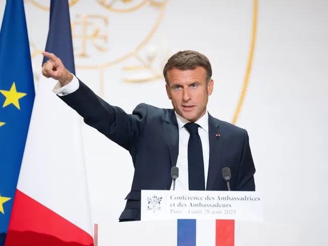 „Acest context se complică şi face să sporească riscul unei slăbiri a Occidentului şi mai ales a Europei noastre”, a declarat Macron la Paris, în cadrul reuniunii anuale a diplomaţiei franceze.