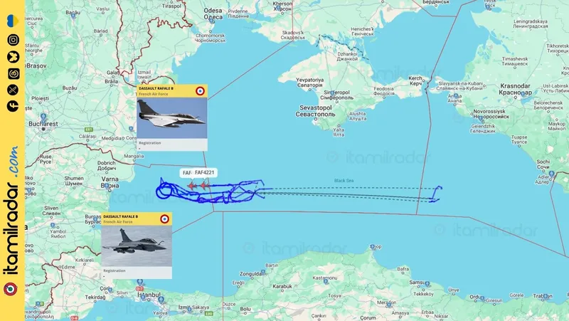 Avioane ale Franței E-3CF și Rafale supraveghează din Marea Neagră mișcările de trupe ale Rusiei.