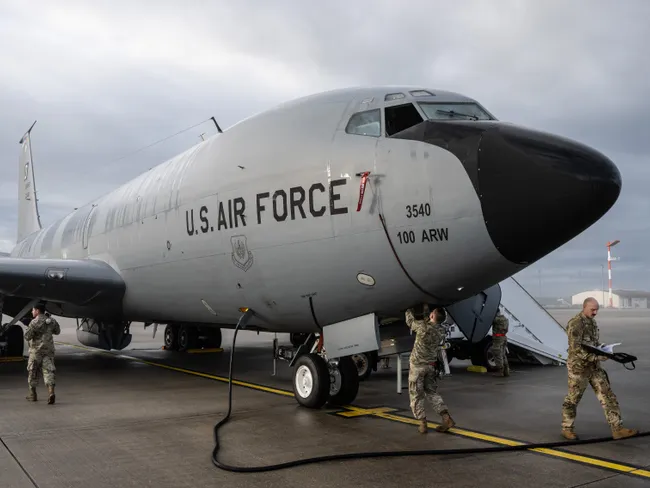 Într-o postare pe Facebook, el a raportat că șapte avioane cisternă ale Forțelor Aeriene americane, utilizate pentru realimentarea aeriană a avioanelor de luptă, sunt staționate în prezent la aeroport.