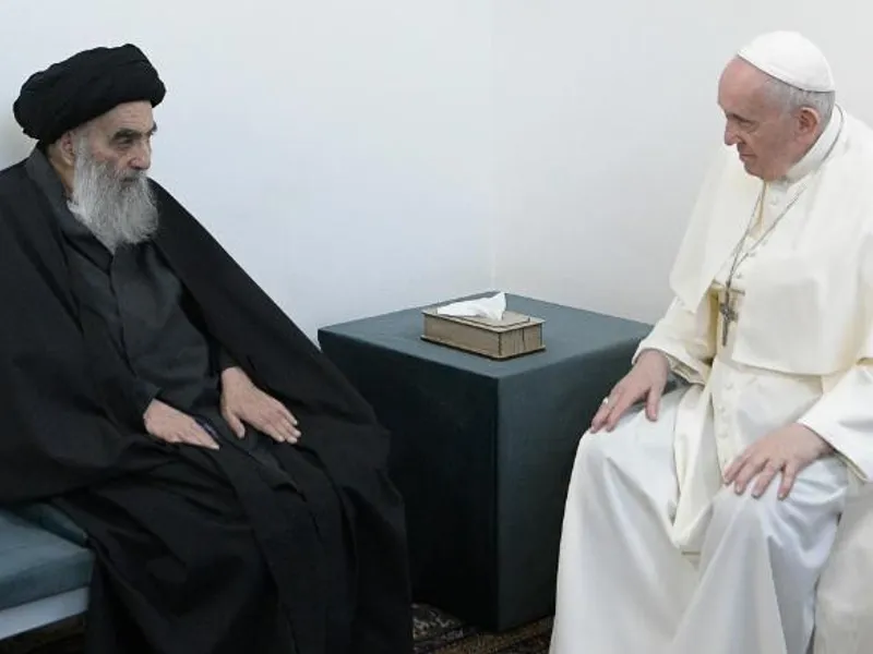 Este pentru prima dată în istorie când liderul celor 1,3 miliarde de catolici din lume are o întrevedere cu marele ayatollah din Najaf, aminteşte AFP.