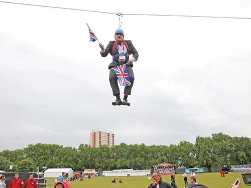 În august 2012, pe când era primarul Londrei, iar metropola găzduia Jocurile Olimpice, Boris Johnson a rămas suspendat, timp de aproximativ 10 minute, în timp ce încerca să coboare pe o tiroliană în Victoria Park.