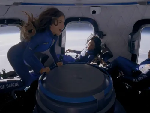 Blue Origin oferă călătorii scurte pentru turiştii spaţiali din 2021. Bezos a fost unul dintre pasagerii zborului inaugural cu echipaj uman.