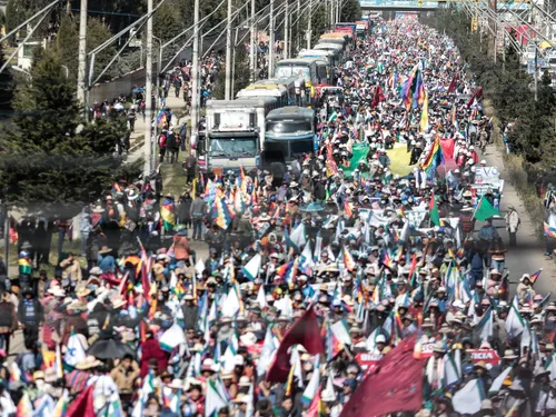 După ce au început vineri un marș din El Alto, oraș vecin cu La Paz, manifestanții au ajuns în capitala administrativă a țării andine cu intenția de a converge spre Tribunalul Electoral Suprem (TSE), plasat sub o puternică protecție polițienească.