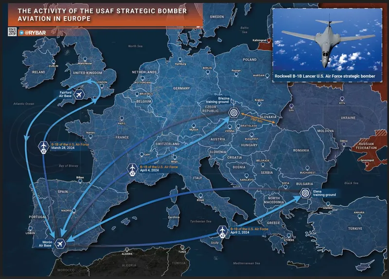 Aceste bombardiere fie zboară la câteva sute de kilometri de Rusia, fie efectuează lansări de antrenament pe terenurile din apropiere. Și la sfârșitul lunii februarie, B-1B se aflau la baza Kallax din Suedia, la 370 km de Federația Rusă.