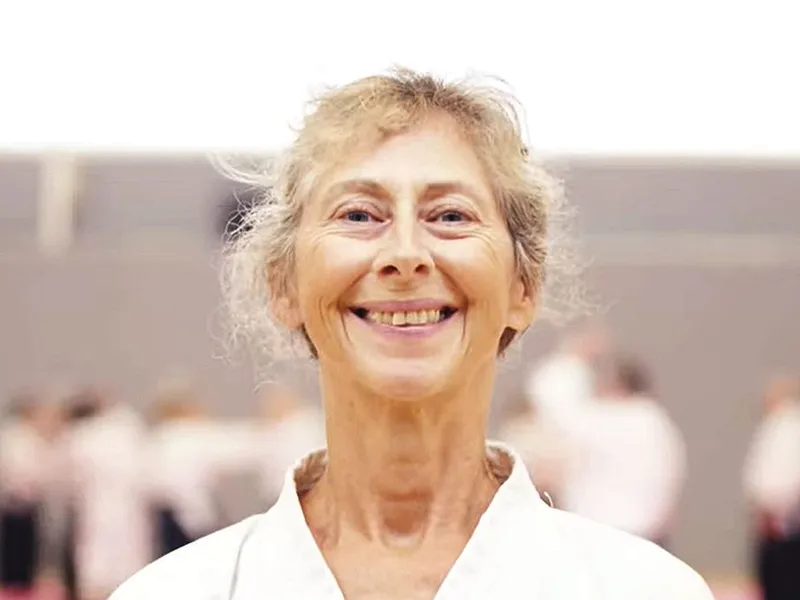 „Am fost îngrozită și am crezut că toți acești tipi vor fi șocați de intrarea unei bătrâne”, spune ea. „Profesorul m-a încurajat să rămân și mi-am dat seama că toți erau amabili și bucuroși, că sunt acolo. Aceasta a fost prima mea experiență în a învăța aikido.”