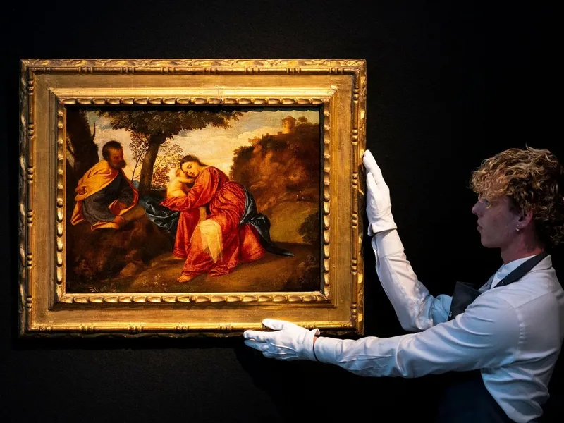 „Rest On The Flight Into Egypt", pictat de maestrul veneţian Tiţian la vârsta de doar 20 de ani, în 1510, a fost vândut de casa de licitaţii Christie's din Londra.