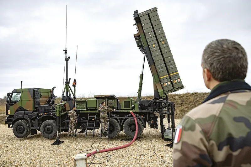 Soldați ai Forțelor Aeriene franceze operează un sistem sol-aer cu rază medie de acțiune MAMBA în timpul misiunii „Eagle Royal“ la baza militară de la Capu Midia, România, la 6 decembrie 2022 - Foto: Profimedia Images