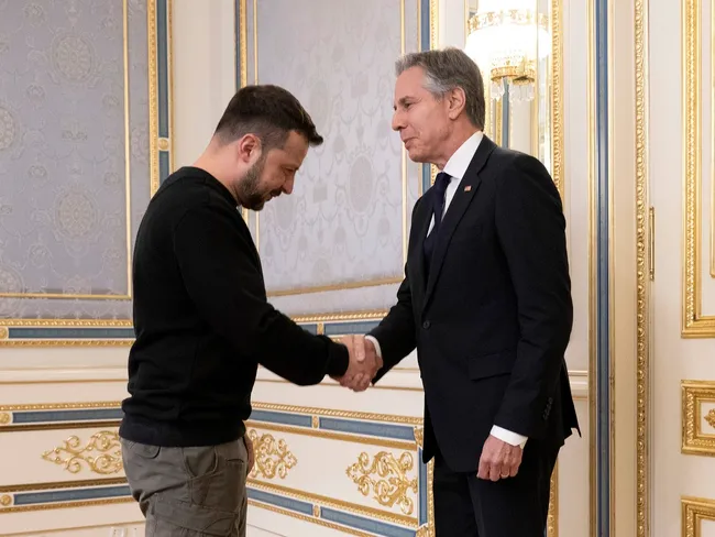 Ce i-a promis Blinken lui Zelenski în vizita neanunțată. Ce va face SUA când Ucraina e atacată de Rusia. Secretarul de stat al SUA, Antony Blinken, a declarat că un potențial acord bilateral de securitate cu Ucraina va oferi asistență militară, aducând țara „mai aproape de NATO”.