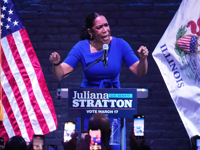 Într-o sală de mese luminată de soare din interiorul Montclare Senior Residences, pe South Side din Chicago, JB Pritzker, guvernatorul miliardar al Illinoisului, cu ochii ațintiți spre o posibilă candidatură prezidențială democrată în 2028, a apărut în fața unui grup de vârstnici afro-americani înaintea alegerilor primare de luna trecută. Lângă el se afla viceguvernatoarea Illinoisului, Juliana Stratton, candidata pe care o susținea pentru Senatul SUA.