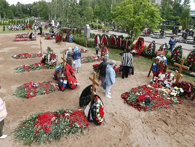 Cei 14 au fost îngropați în cimitirul Serafimov în St. Petersburg, lângă monumentul celor 118 marinari morți în tragedia de pe submarinul nuclear Kursk (anul 2000).
