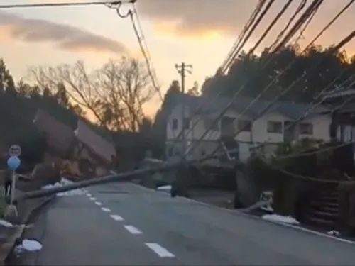 Imagini din oraşul Wajima cu case prăbuşite şi avariate, alături de drumuri cu fisuri uriaşe, au fost difuzate de NHK, postul public de televiziune din Japonia. Pagubele par a fi rezultatul cutremurului şi nu al tsunami-ului de 1,2 metri care a lovit zona.