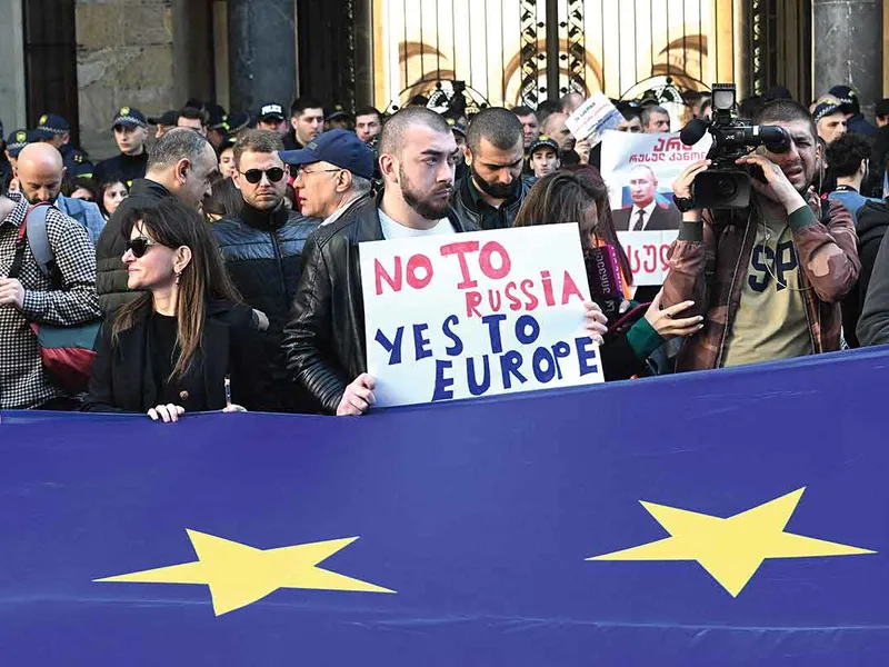 „Legea rusească“ împotriva societății civile, adoptată în Georgia, a generat proteste masive. Propaganda guvernamentală îi etichetează pe protestatari drept agenți ai războiului global - Foto: Profimedia Images