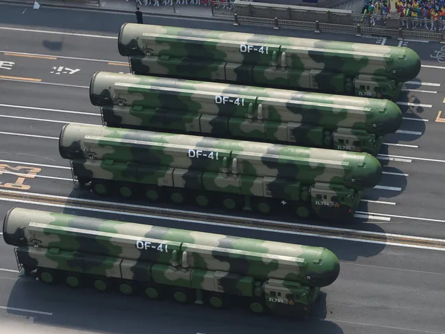 The DF-41 is China's longest-range missile, capable of reaching speeds of up to Mach 25 and designed to carry up to 10 nuclear warheads.