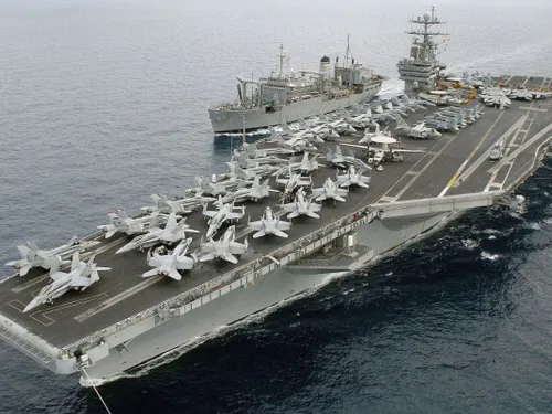 USS Ralph Johnson, un distrugător de rachete ghidate Arleigh Burke, a urmărit portavionul, care nu avea avioane pe punte și a navigat spre nord prin strâmtoare, a adăugat sursa.