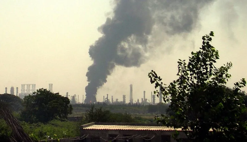 Fumul se ridică din rafinăria operată de Reliance Industries din India, situată în Jamnagar, la aproximativ 400 km vest de Ahmedabad - Foto: Profimedia Images