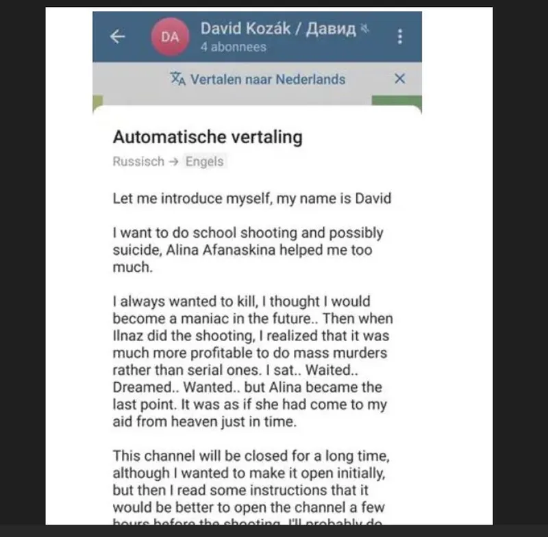 În perioada premergătoare atacului, el a ținut un jurnal în limba rusă pe aplicația de mesagerie Telegram