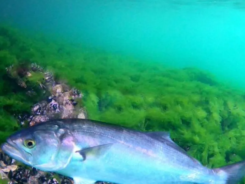 Peștele albastru (Pomatomus saltatrix) este un prădător marin puternic, cu o falcă extrem de dezvoltată.