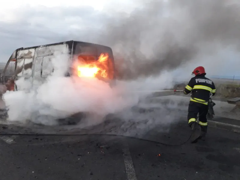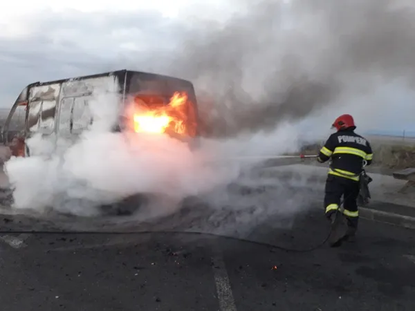Oamenii au sunat imediat la 112, iar la faţa locului s-au deplasat 2 autospeciale de stingere. Când au sosit pompierii, microbuzul era deja cuprins de flăcări, potrivit știrileprotv.ro.