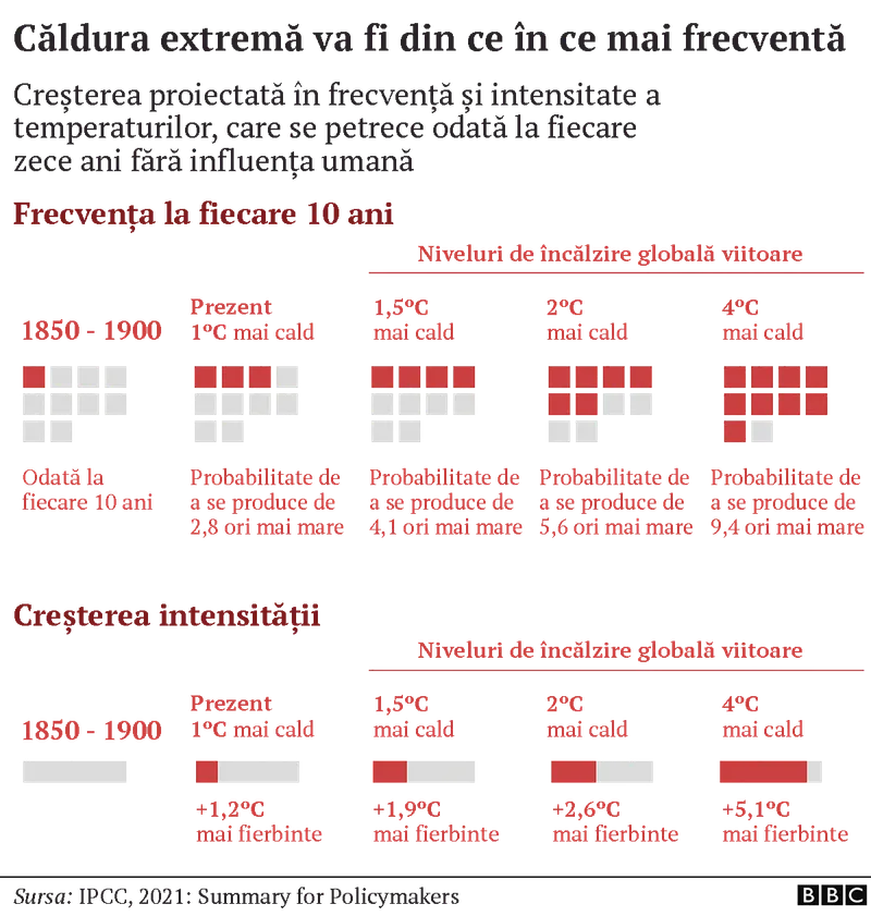 „Schimbările climatice nu sunt o problemă a viitorului, sunt aici acum și afectează fiecare regiune din lume“, a declarat dr. Friederike Otto, de la Universitatea din Oxford și unul dintre autorii Grupului interguvernamental ONU privind schimbările climatice (IPCC), care au întocmit raportul „Cod roșu pentru umanitate“.