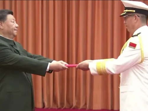 Președintele Xi Jinping a organizat o ceremonie de promovare a ofițerilor promovați la gradul de patru stele – amiral Hu Zhongming, numit comandant al Marinei și general Wang Wenquan - comisar politic al Comandamentului Teatrului de Sud.
